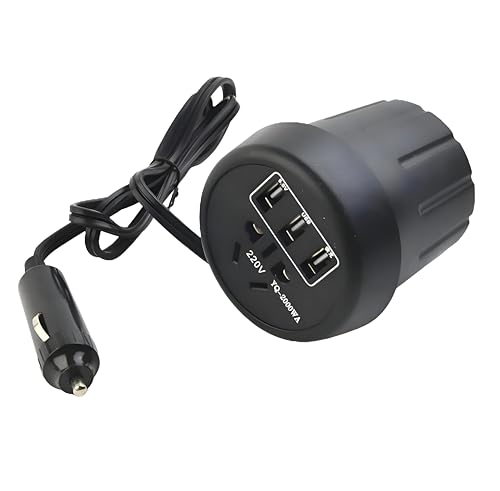 Generic - محول DC‑AC محمول - محول طاقة 12 فولت إلى 220 فولت USB مع حامل كوب مدمج، حماية من القصر والارتفاع الحراري، مؤشر LED، مثالي لتشغيل ثلاجة السيارة، أضواء LED والأجهزة الصغيرة أثناء التنقل.