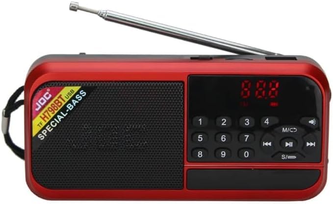 Generic - راديو اف ام رقمي محمول، انالوج يعمل بالبطارية وصوت ثلاثي الابعاد قوي للغاية واشارة ممتازة (موديل H798BT) اللون (احمر واسود)