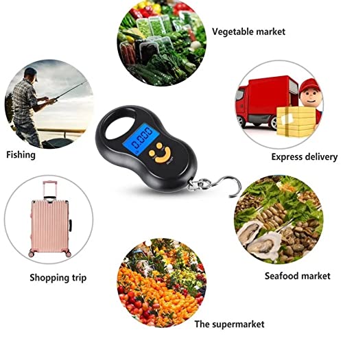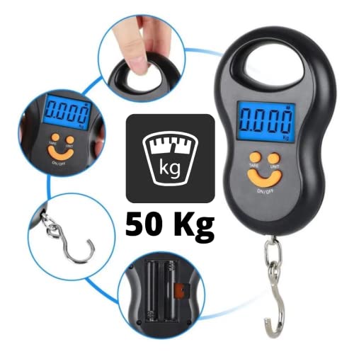 - ميزان رقمي محمول للاستخدام مع شنط السفر وفي أسواق السمك، يزن حتى 50 كجم، ميزان إلكتروني رقمي مع خطاف 50 كجم، يزن ما بين 10 جرام إلى 50 كجم، ميزان محمول مثالي للاستخدام كميزان السمك، ميزان الشنط، ميزان شنطة السفر، ميزان المطبخ، ميزان المعارض التجارية، ميزان التسوق، إلخ... تحقق من الشعار الصغير للغاية وسهل الحمل.