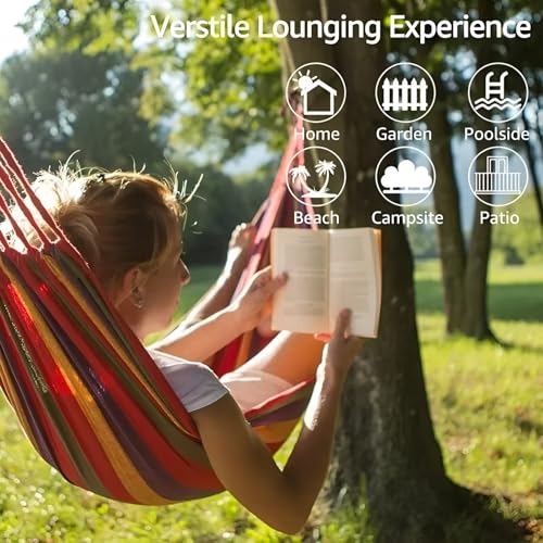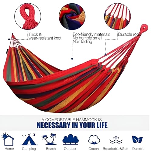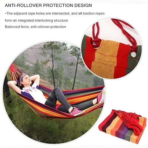 Generic - أرجوحة قماشية مزدوجة محمولة 185×80 سم، أرجوحة تخييم قطنية قابلة للطي مع عقدة معدنية وحقيبة حمل، تتحمل حتى 450 باوند، مناسبة للحديقة والفناء الخلفي والشاطئ والسفر والاسترخاء