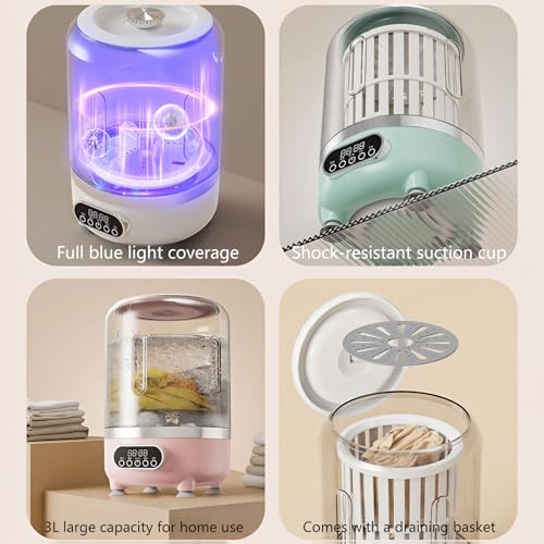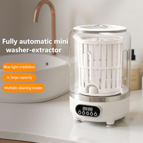 PEIXEN - غسالة ملابس داخلية محمولة مزدوجة الغرفة، 3 لتر تعقيم بالاشعة فوق البنفسجية وتجفف بالدوران، منظف صغير قابل لاعادة الشحن للسفر/المنزل، ابيض