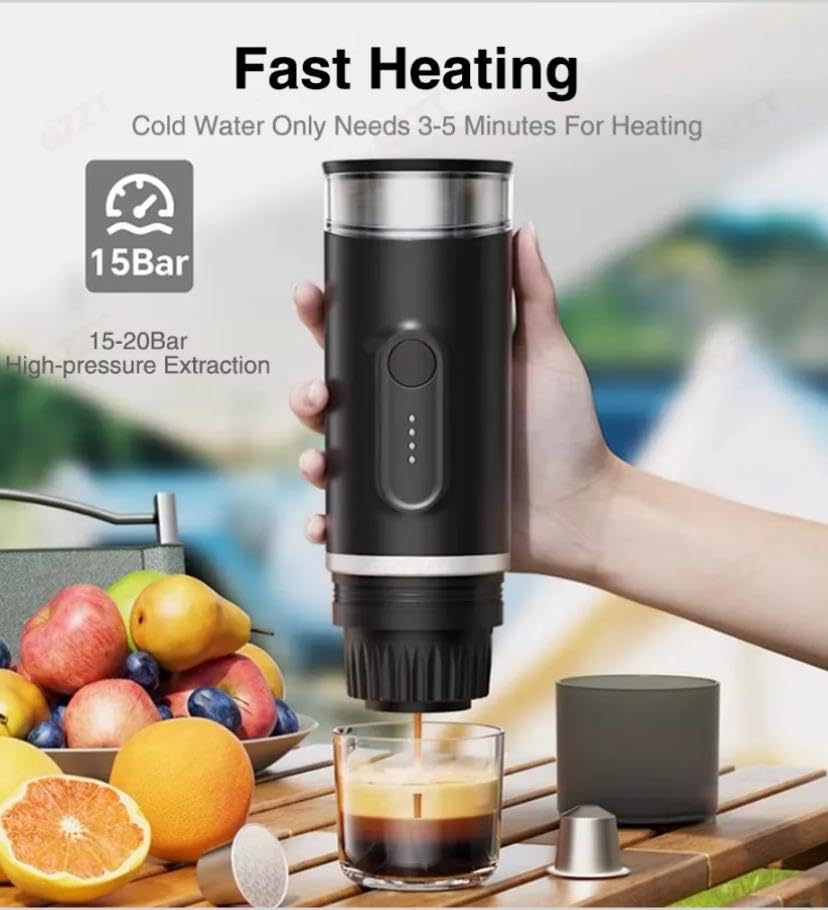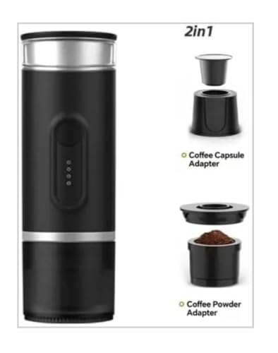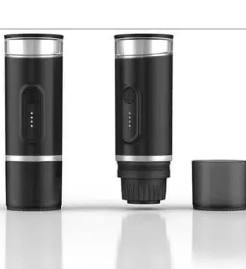Generic - مطحنة قهوة كهربائية محمولة، لون أسود مع فضي، تصميم أسطواني عصري 150الى 200 بار