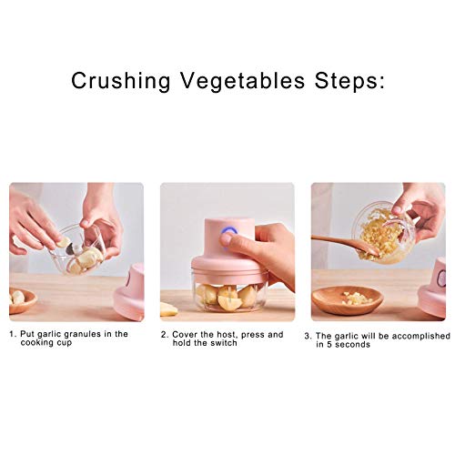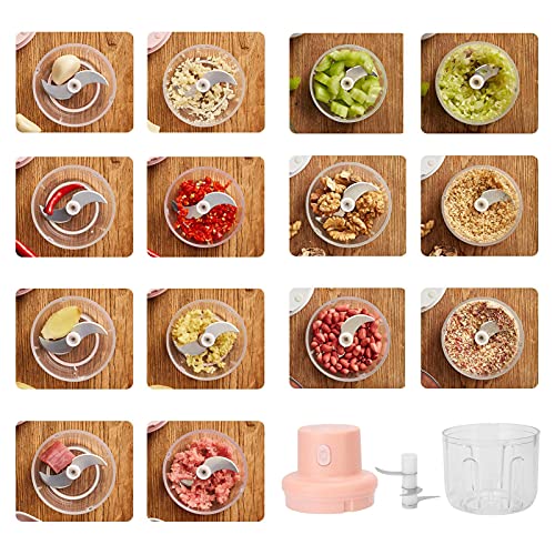 Atyhao - مفرمة لحم كهربائية من اتيهاو، مفرمة طعام طازج صغيرة للمطبخ للبصل والزنجبيل والثوم والفلفل الحار بمحرك 45 وات وطاقة منخفضة وبسعة 250 مل، لون وردي