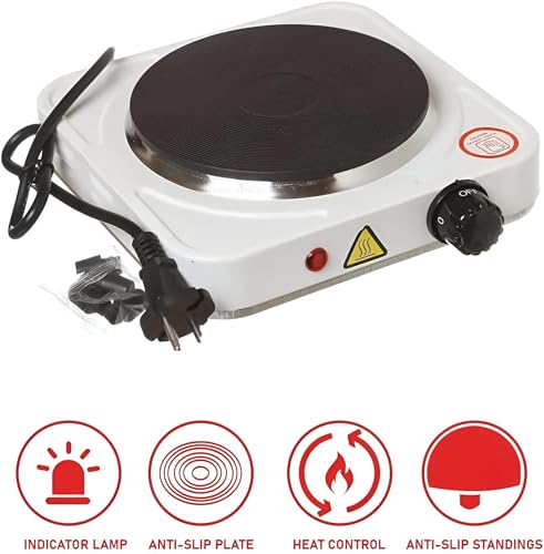 Generic - موقد كهربائي محمول مع سطح تسخين واحد، طلاء غير لاصق، حماية مدمجة من الحرارة الزائدة، 1000 وات للطهي السريع والفعال