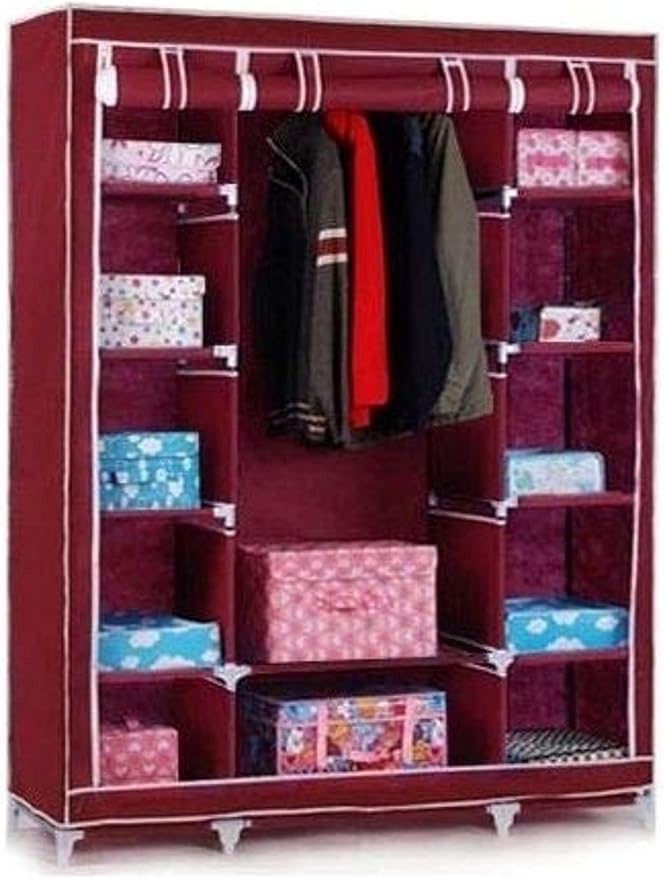 - تصميم محمول: دولاب ملابس قماشي خفيف الوزن مع جزء خارجي رمادي وحواف بيضاء، مثالي لحلول التخزين المؤقتة وسهولة النقل عند الحاجة