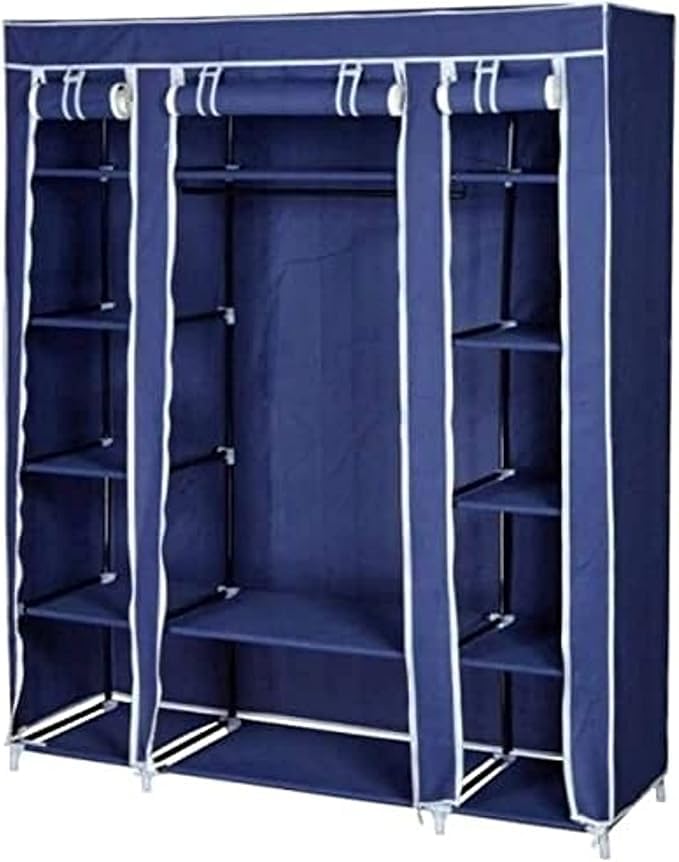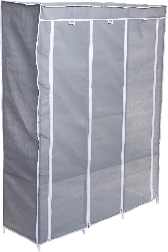- تصميم محمول: خزانة ملابس قماشية خفيفة الوزن مع جزء خارجي رمادي وحواف بيضاء، مثالية لحلول التخزين المؤقت وسهولة النقل عند الحاجة