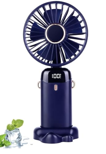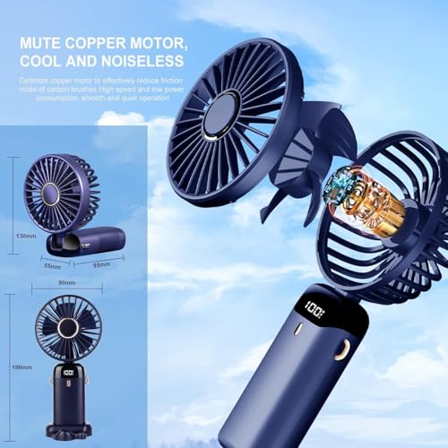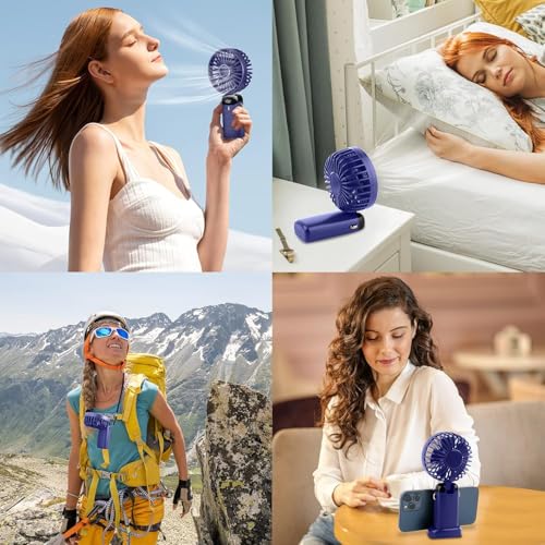 Generic - مروحة محمولة باليد صغيرة بمنفذ USB، مروحة شخصية للسفر قابلة لإعادة الشحن، مروحة مكتب صغيرة قابلة للطي بـ5 سرعات للسفر والتخييم والأماكن الخارجية والمكتب (أزرق بحري غامق)