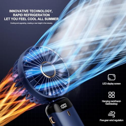 - ❄️ [تصميم ثلاثة في واحد] مروحة رقبة معلقة + مروحة مكتب + مروحة يدوية. يمكن تعليقها بحبل رقبة لارتداء سهل طوال اليوم؛ تصميمها الأساسي مع طي بزاوية 90 درجة يجعلها سهلة الوضع على المكتب؛ ومروحة اليد تناسب جميع المناسبات بكل راحة.