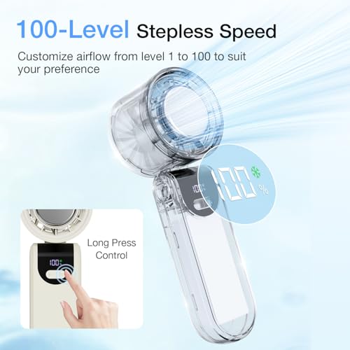 - مروحة تربو مع سرعة الرياح القابلة للتخصيص: مروحة محمولة تقدم محرك مشابه لمجفف الشعر عالي السرعة، يسهل ضبط سرعة الرياح من 1-100 ترس، تلبي جميع احتياجاتك. نظام توجيه الرياح بتقنية الشحن التوربيني، تجمع الرياح القوي، تدفق تدفق الهواء عالي السرعة، مما يوفر تجربة تبريد مذهلة، تزيد سرعة التبريد بأكثر من 3 مرات، اختيار رائع كهدية للسفر