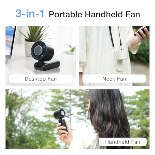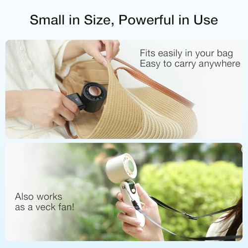 - مروحة صغيرة 3 في 1: اكتشف الراحة القصوى مع مروحتنا الشخصية المبتكرة المحمولة والمصممة لتوفير وظائف مزدوجة. قم بالتبديل بسلاسة بين المروحة المحمولة المحمولة ومروحة المكتب العملية لتناسب احتياجاتك. تأتي هذه المروحة الصغيرة مزودة بحبل قصير، مما يسمح لك بتعليقها على الرقبة لتبريد شخصي بدون استخدام اليدين. صغيرة للغاية وخفيفة الوزن وسهلة الحمل، إنها الرفيق المثالي للعمل أو المشي أو السفر أو جلسات المكياج أو التسوق