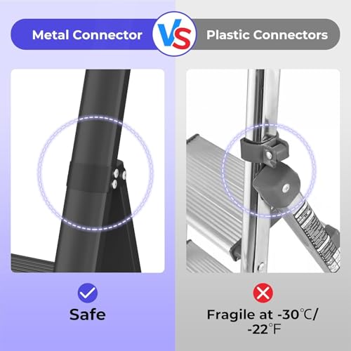 - 【خطوات واسعة مضادة للانزلاق】 تم تصميم كل خطوة بعرض كبير وسطح محكم، مما يوفر قاعدة آمنة ويقلل من خطر الانزلاق أو عدم الاستقرار، مما يتيح للمستخدمين أداء مهام مرتفعة براحة وثقة وتحكم دقيق في الحركة