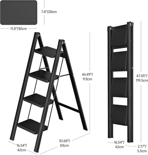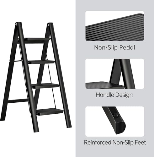- 【إعداد وتخزين بسيط】 مصمم للراحة، يفتح هذا السلم ويغلق في مكانه بسرعة دون تجميع معقد، بينما يمكن طيه مرة أخرى بنفس السهولة، مما يوفر أداة عملية وجاهزة للاستخدام توفر الوقت والجهد للمهام اليومية. ️ ️