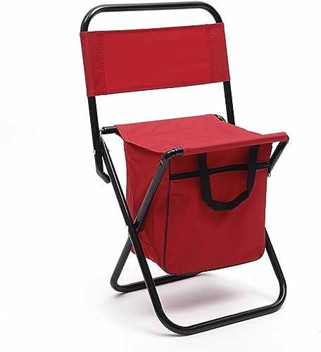 Generic - كرسي تخييم محمول قابل للطي مع حقيبة تخزين، إطار فولاذي وقماش أكسفورد، خفيف الوزن للصيد والتنزه والأنشطة الخارجية، أحمر