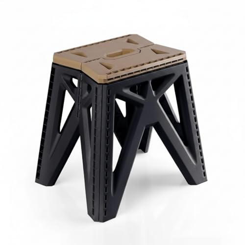 Generic - كرسي قابل للطي محمول، أسود وبيج، 36 سم، يتحمل حتى 500 كجم، خفيف الوزن مع مقبض، مضاد للانزلاق، موفر للمساحة