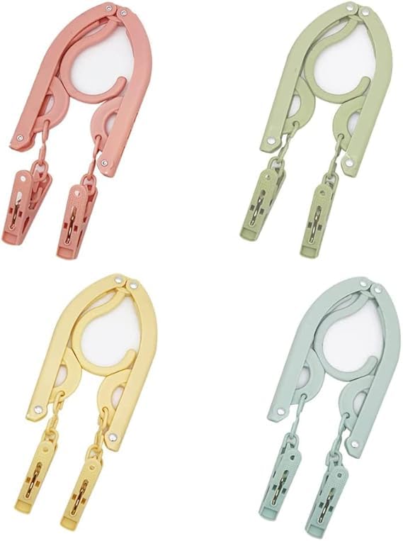 Generic - شماعة ملابس محمولة قابلة للطي، بلاستيك، قابلة للطي، للسفر، رف تجفيف الملابس مع مشابك، شماعات قابلة للطي مع مشابك للسفر (4 قطع)
