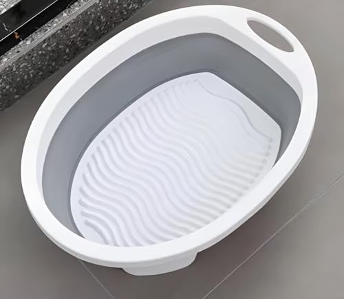 Generic - حوض أطباق محمول قابل للطي، حوض غسيل بلاستيكي متعدد الأغراض للتخييم والبحرية مع لوح غسيل مدمج مريح