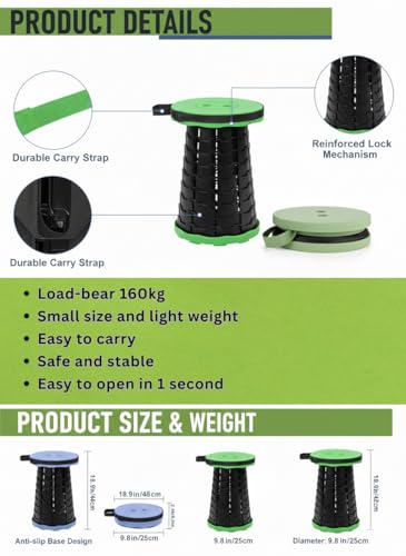 Generic - كرسي محمول قابل للطي للسفر وصيد الأسماك والصلاة (صلاة)، كرسي تخييم قابل للسحب، خفيف الوزن 1 كجم، أخضر هذا طلب رائع. سأستخدم الكلمات الرئيسية العربية التي قدمتها (مثل صلاة،