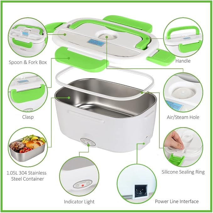 - جهز اللانش بوكس بتقنية تسخين موفرة للطاقة، حيث يسخن طعامك إلى درجة حرارة ثابتة في غضون 30 دقيقة فقط دون الحاجة إلى الميكروويف، مما يضمن بقاء وجبتك دافئة وطازجة خلال جدولك المزدحم.