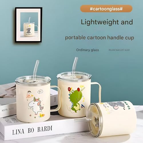 Generic - كوب زجاجي محمول - كوب قهوة معزول بجدار مزدوج مع قشة وغطاء شفاف ومقبض للمشروبات اثناء التنقل (قطعتان)