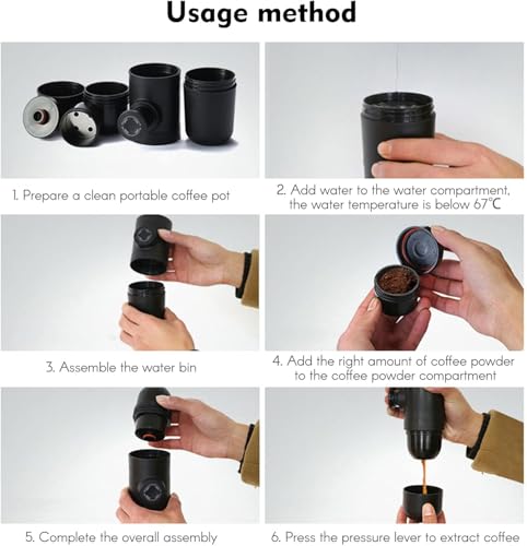 - قهوة إسبريسو أينما كنت! استمتع بطعم القهوة الأصيلة في أي وقت وأي مكان — سواء في السفر، المكتب، السيارة، أو أثناء التخييم — دون الحاجة إلى كهرباء أو أسلاك.