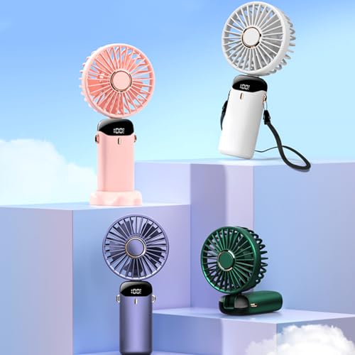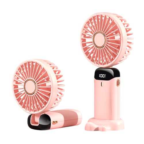 Anncain - مروحة مكتب صغيرة قابلة للطي وقابلة لاعادة الشحن بمنفذ USB مع 5 سرعات، تعمل بالبطارية مع شاشة LED للمنزل والمكتب والسفر (بينك)