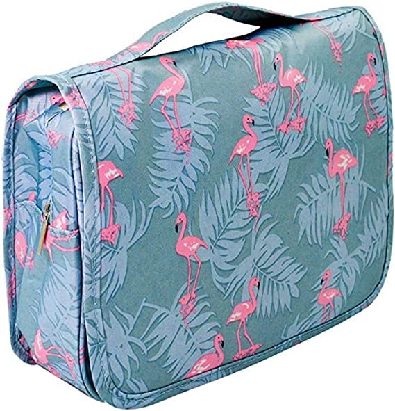 Generic - شنطة سفر محمولة معلقة لادوات الزينة مقاومة للماء لتنظيم المكياج ومستحضرات التجميل للنساء والفتيات بلون ازرق وزهري فلامنجو، البوليستر