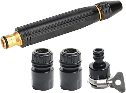 - مسدس مياه محمول عالي الضغط قابل للازالة مع فوهة رش معدنية لتنظيف الحديقة والسيارة بنفسك، مجموعة من 4 قطع (لون اسود)