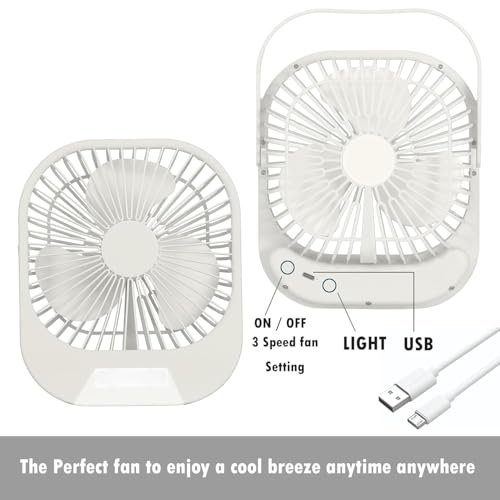 MERV - مروحة طاولة محمولة عالية السرعة للتبريد مزودة بكابل USB، لون اوف وايت