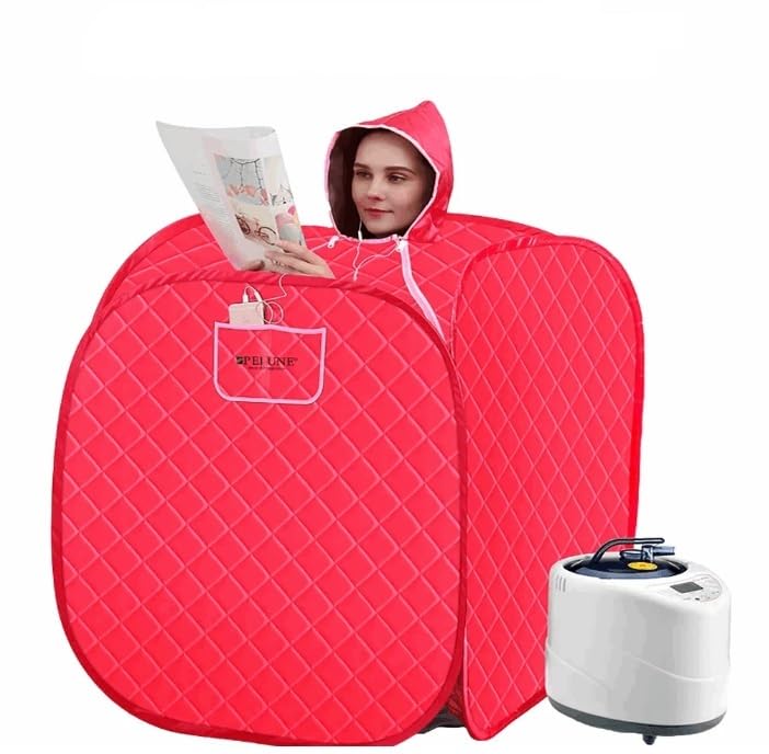 Generic - ساونا بخار منزلية محمولة 1500 واط، 220 فولت مع جهاز تبخير وحقيبة حمل، لوحة تحكم رقمية مع ريموت كنترول، خزان ستانلس ستيل، أحمر وأبيض