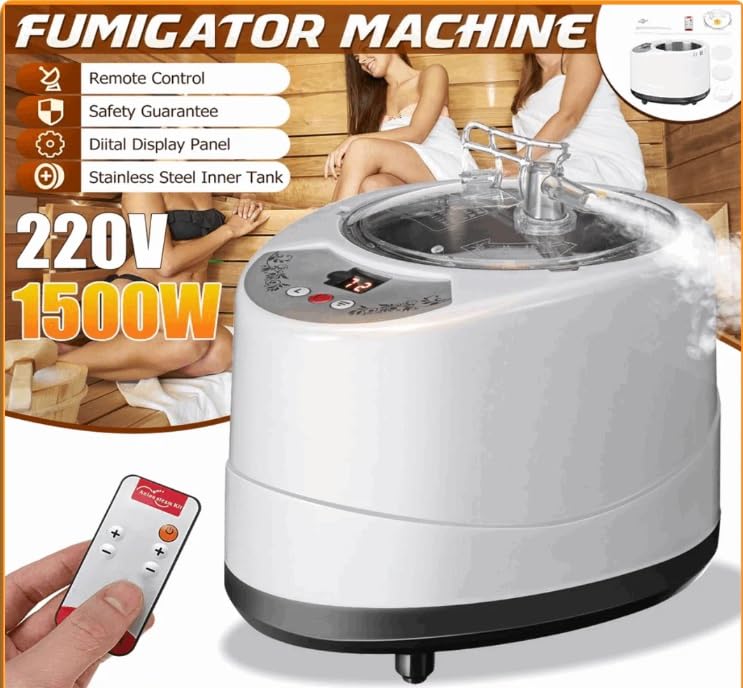 - قوة تسخين عالية: جهاز تبخير بقوة 1500 واط يعمل على 220 فولت مع خزان داخلي من الستانلس ستيل لتوليد بخار فعال وسريع لجلسة ساونا مريحة