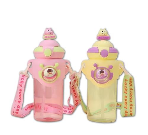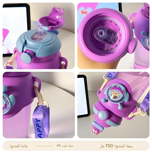 Generic - مرطب محمول - زجاجة شرب للاطفال سعة 750 مل مع مانع للتسرب وقشة قابلة للازالة ولمسة نهائية ملونة وهيكل متين مصمم لشنطة الظهر وركوب السيارات والرياضة (قطعة 2)