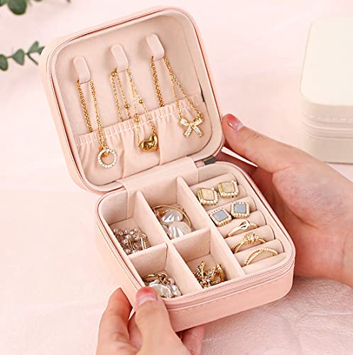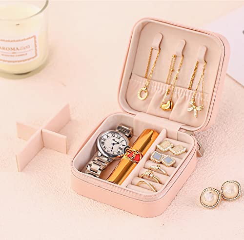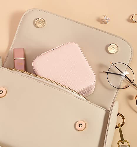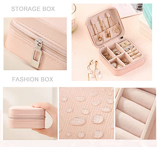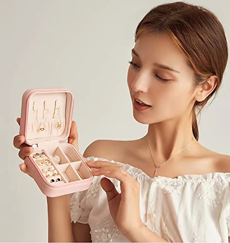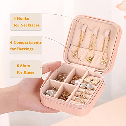 MOBOOY - صندوق صغير منظم للمجوهرات محمول من الجلد الصناعي للبنات والنساء، حافظة مجوهرات للسفر، علبة تخزين للخواتم والحلقان والسلاسل والأساور، (وردي)