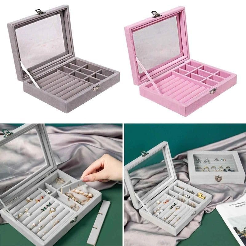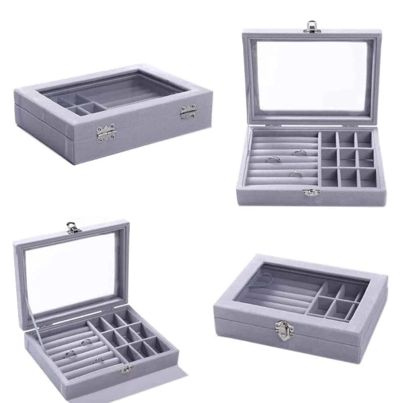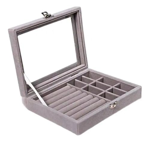 Chicco - حاوية تخزين محمولة خفيفة الوزن للمجوهرات، منظم مجوهرات للخواتم، والسلاسل والانسيالات للاستخدام المنزلي (رمادي)، بلاستيك