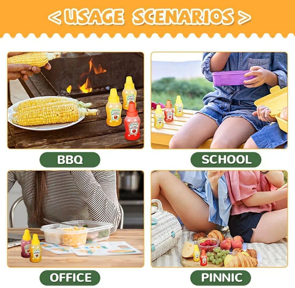 - 【خيارات صلصة متعددة】مناسبة لمجموعة من التوابل بما في ذلك الكاتشب أو الخردل أو الصلصة أو العسل أو السوائل المشابهة، تتكيف هذه الزجاجات بسهولة مع تفضيلات الطعام المختلفة، مما يوفر المرونة لمختلف الوجبات والنزهات وخيارات الذوق الشخصية