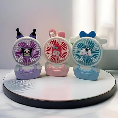 Generic - مروحة كهربائية خفيفة الوزن ومحمولة مع تصميم بطارية قوي وقابل لإعادة الشحن على شكل رسوم متحركة 15.0 واط متعدد الألوان