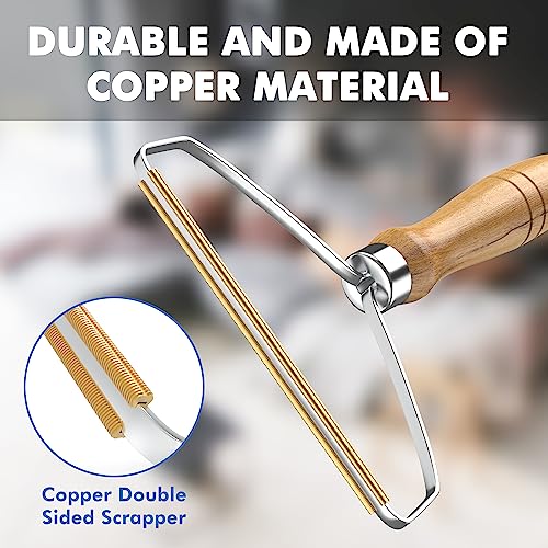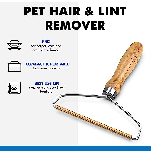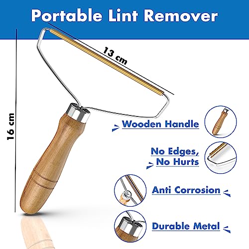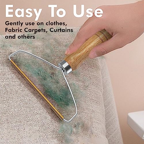 - فرشاة يدوية لإزالة الوبر من الملابس بمقبض خشبي طويل لاستعادة الملابس والأقمشة والمفروشات - بكرة قابلة لإعادة الاستخدام لإزالة شعر الحيوانات الأليفة من السجاد.