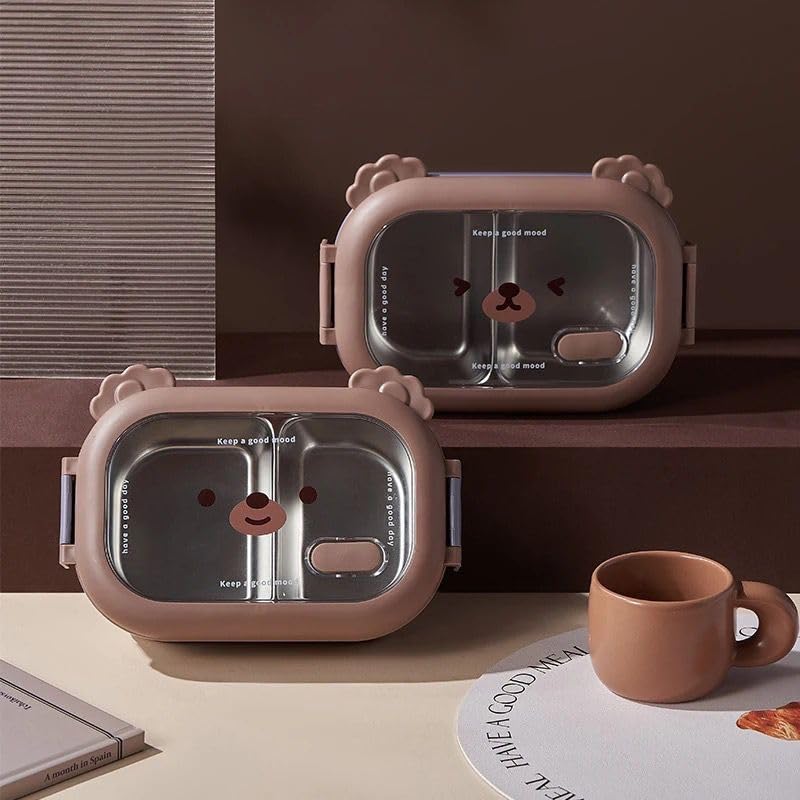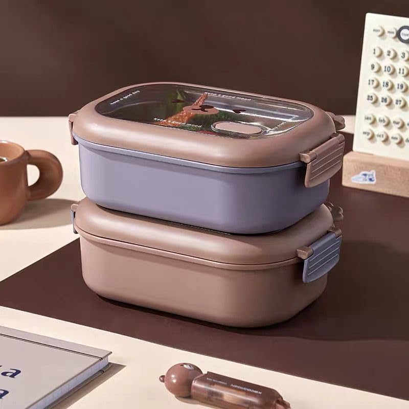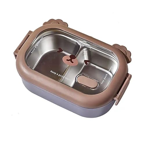 Generic - صندوق غداء بينتو محمول من الستانلس ستيل مانع للتسرب بنمط كرتون بينتو حاوية طعام للاطفال - امن للاستخدام في الميكروويف - (ارجواني)