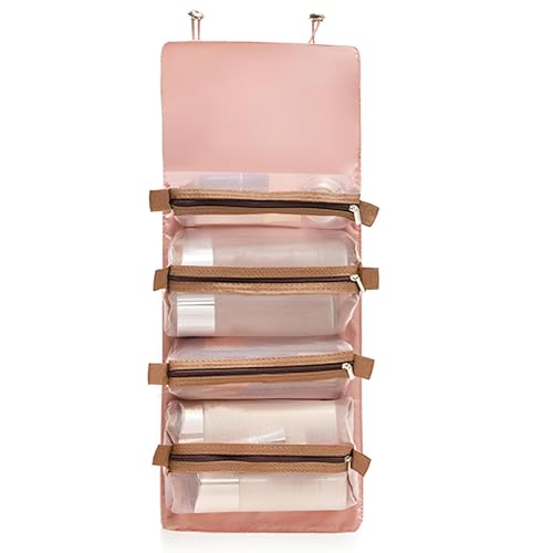 Generic - حقيبة مكياج متنقلة ذات مساحة واسعة للنساء والفتيات، حقيبة تجميل بتصميم قابل للإزالة، أربعة في واحد، لتنظيم أدوات المكياج أثناء السفر (وردي)