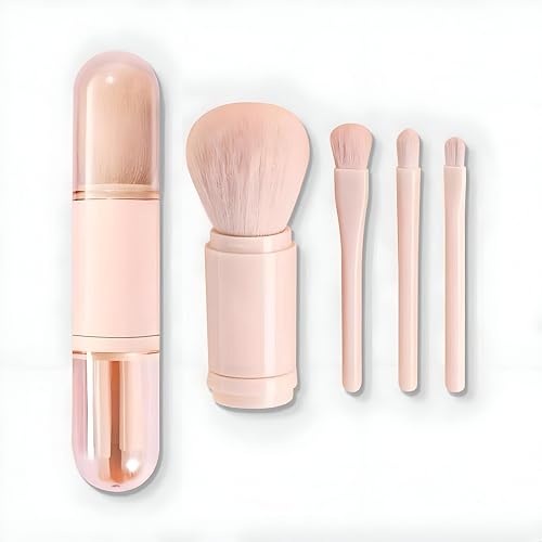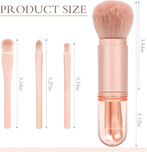 Generic - فرشاة مكياج محمولة - اداة وجه 4 في 1 تقدم نتائج احترافية في عبوة بحجم مناسب للسفر مع رؤوس قابلة للفصل للحصول على أقصى قدر من التنوع والراحة (بينك)