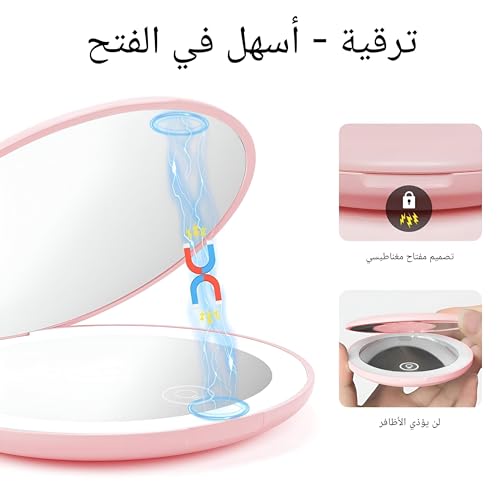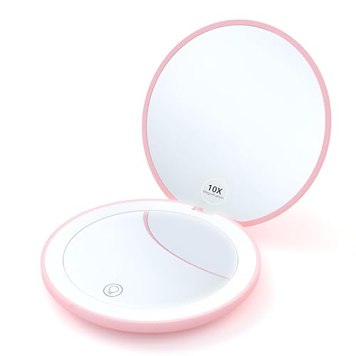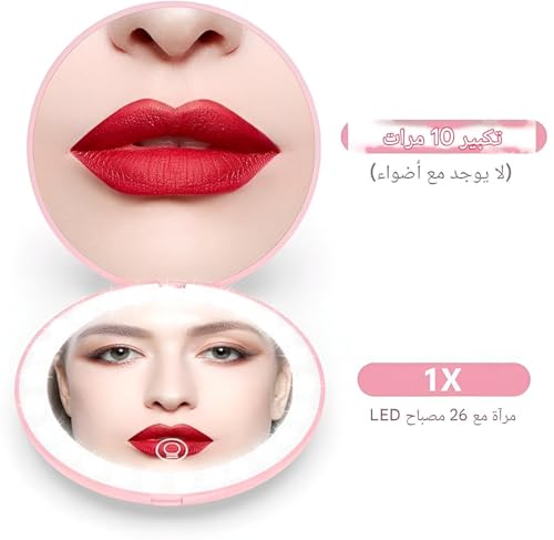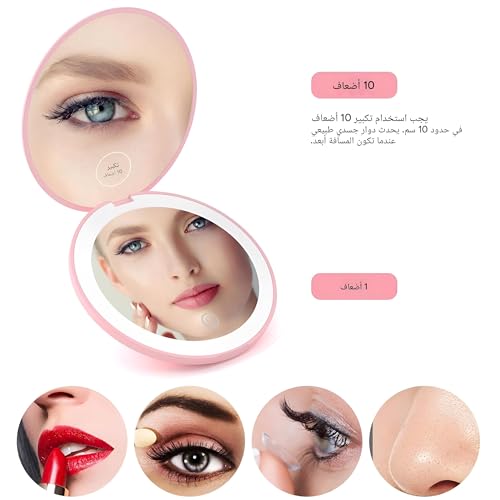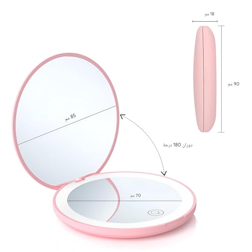 - تتميز مرآة السفر المدمجة هذه بتكبير 10 أضعاف وإضاءة LED مدمجة، مما يجعلها مثالية لروتين الجمال التفصيلي أثناء التنقل. يضمن تصميمها اللاسلكي القابل لإعادة الشحن الراحة وسهولة الحمل، ويمكن وضعها بسلاسة في حقيبتك أو حقيبتك للحصول على لمسات سريعة في أي مكان.
