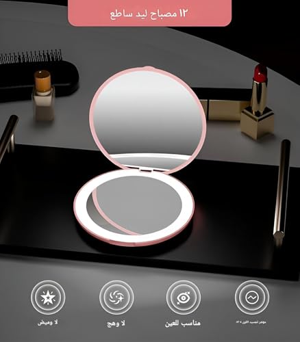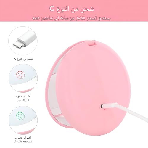 Generic - مراية مكياج محمولة - صغيرة قابلة لإعادة الشحن بإضاءة ليد مزدوجة الجوانب مع لمسة نهائية لطيفة غير لامعة وإضاءة ساطعة
