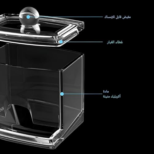 - من بين الميزات البارزة لحامل أعواد القطن هذا هو الغطاء المرفق به. لا يضيف الغطاء الأكريليكي الشفاف لمسة أنيقة فحسب، بل يوفر أيضًا سهولة الوصول إلى المحتويات. يمكن توزيع أعواد القطن بسهولة من أسفل الحامل، مما يجعله خيارًا عمليًا للاستخدام اليومي. يساعد الغطاء في الحفاظ على أعواد القطن مرتبة ونظيفة، ويحميها من الغبار والرطوبة.