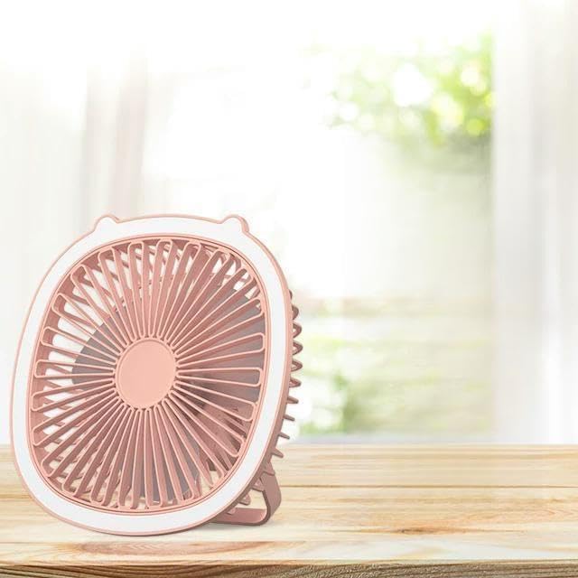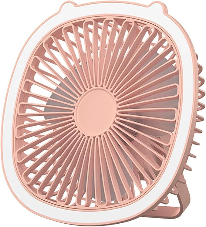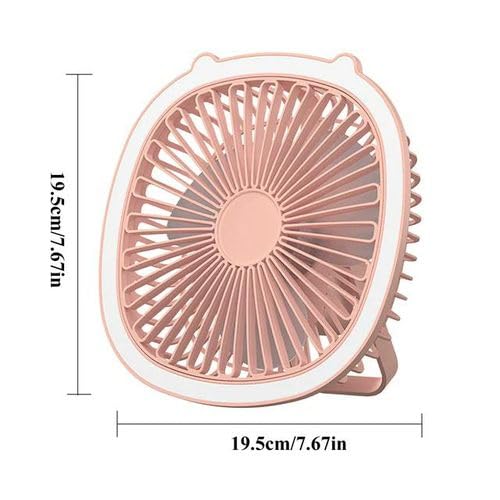 Generic - مروحة مكتب صغيرة محمولة، 19.5 سم، 3 سرعات، اضاءة LED، لون ذهبي وردي، تصميم معلق