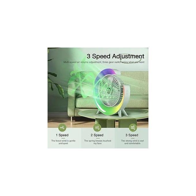 Generic - مروحة مكتب محمولة صغيرة متعددة الألوان بإضاءة LED ملونة - مروحة تبريد كهربائية صامتة بتصميم عصري مع سرعة قابلة للتعديل، مثالية للمكتب، غرفة النوم، السفر والسيارة