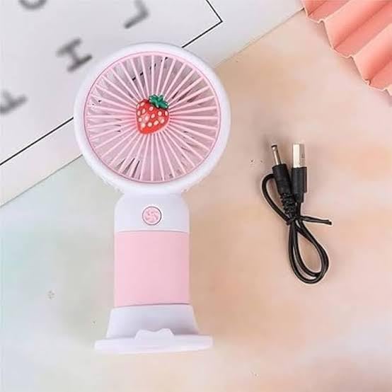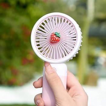 - ١) تصميم مبتكر: مروحة محمولة صغيرة الحجم بتصميم عصري وألوان متعددة جذابة مع زخرفة فريدة على شكل فراولة