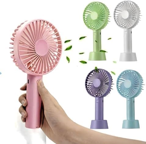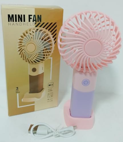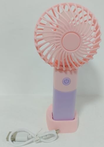 Generic - مروحة صغيرة محمولة - صغيرة وخفيفة الوزن، 3 سرعات، قابلة لاعادة الشحن بمنفذ USB للاستخدام الداخلي والخارجي مع قاعدة قائمة بلون بينك