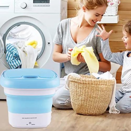 Generic - غسالة صغيرة محمولة قابلة للطي بحوض غسيل للملابس شكل جردل دوار صغير وعملي