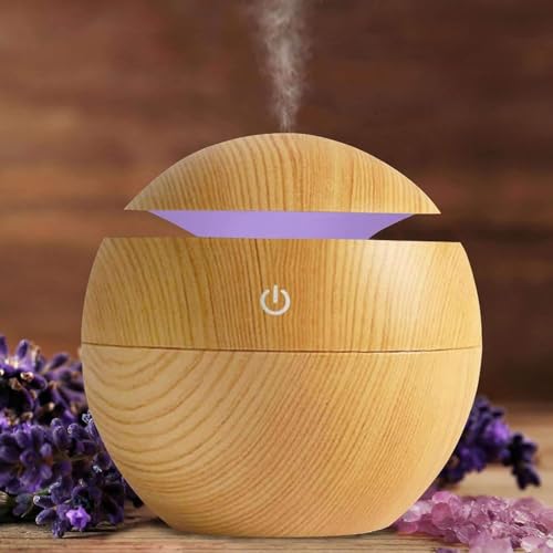Generic - مرطب ومنقي هواء صغير محمول - اغلاق تلقائي، اضواء للسيارة والمكتب والغرف الصغيرة (خشب فاتح)