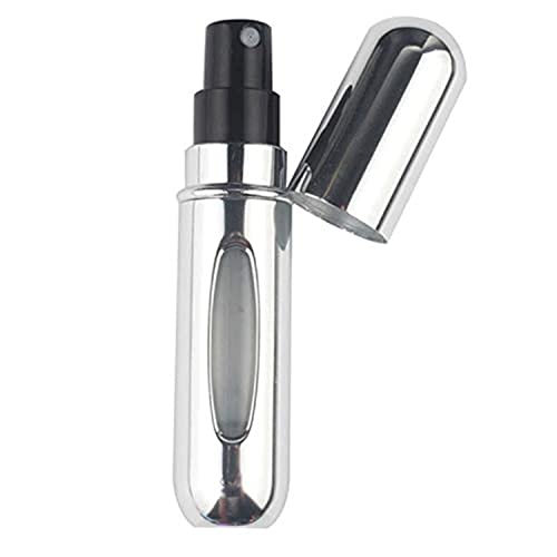 Spaceshoop - زجاجة بخاخ رذاذ العطر الصغيرة قابلة لاعادة التعبئة للخروج، سعة 5 مل، لون فضي