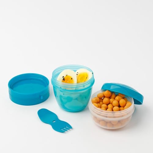 Generic - حافظة طعام محمولة متعددة الأقسام مع ملعقة مدمجة، أوعية بلاستيكية للوجبات الخفيفة، متوفرة بألوان متعددة
